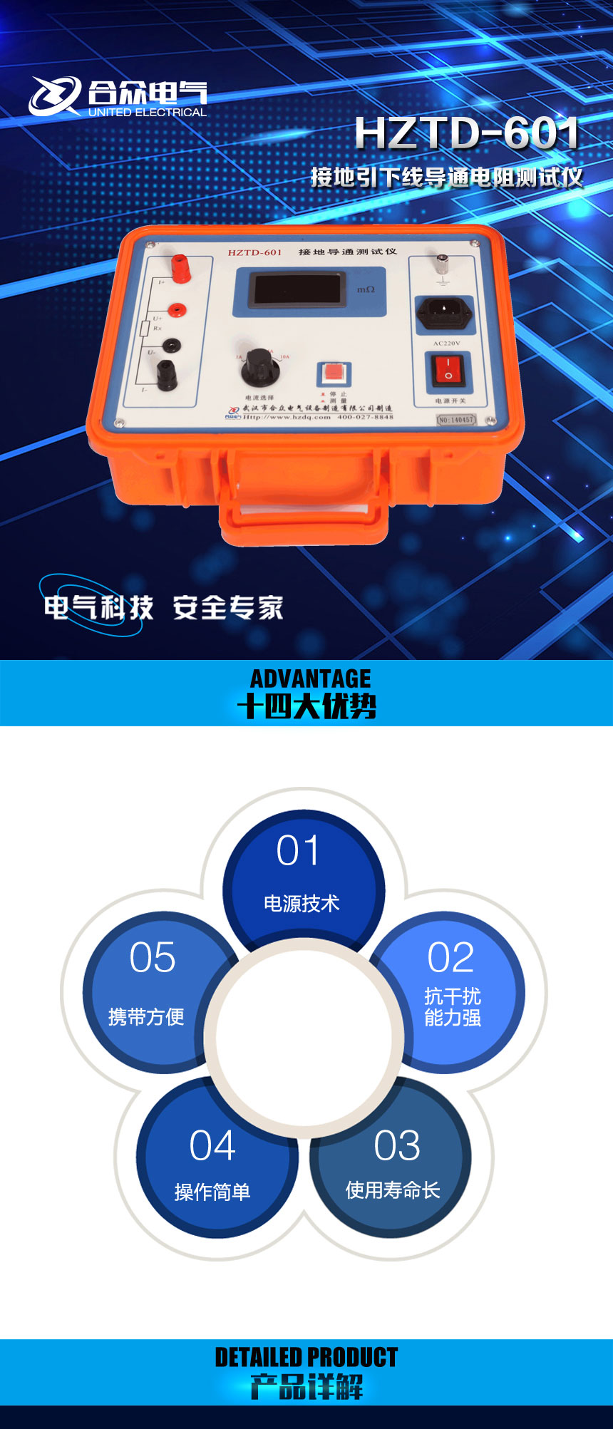 ZTD-601接地引下線導通電阻測試儀作者:合眾電氣發布時間:2016-10-19瀏覽量:9960 次字體顯示:【大】【中】【小】 上一篇: HZBP-400三倍頻電源發生器下一篇: HZJY-621可調高壓數字兆歐表